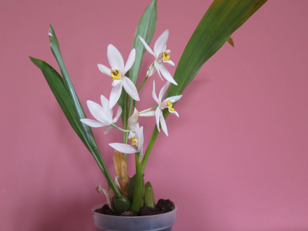 U neofinetie je to asi obvyklé. Taky jsem dlouho čekala, přitom kytka přišla krásná a kořeny rostly jak divé. Letos ještě ovšem chrápe, začínají jen růst kořeny. Květy - uvidíme. Fotky - ph.speciosa opět 5 čistě bílých kvítků, přitom jsem přidala na světle, takže světlem se asi do červena nevybarvují. Když někdo přijdete na to, jak zčervenat - dejte vědět. I takhle je to krásná kytka, ale zrovna u téhle chceme něco jiného. Martina