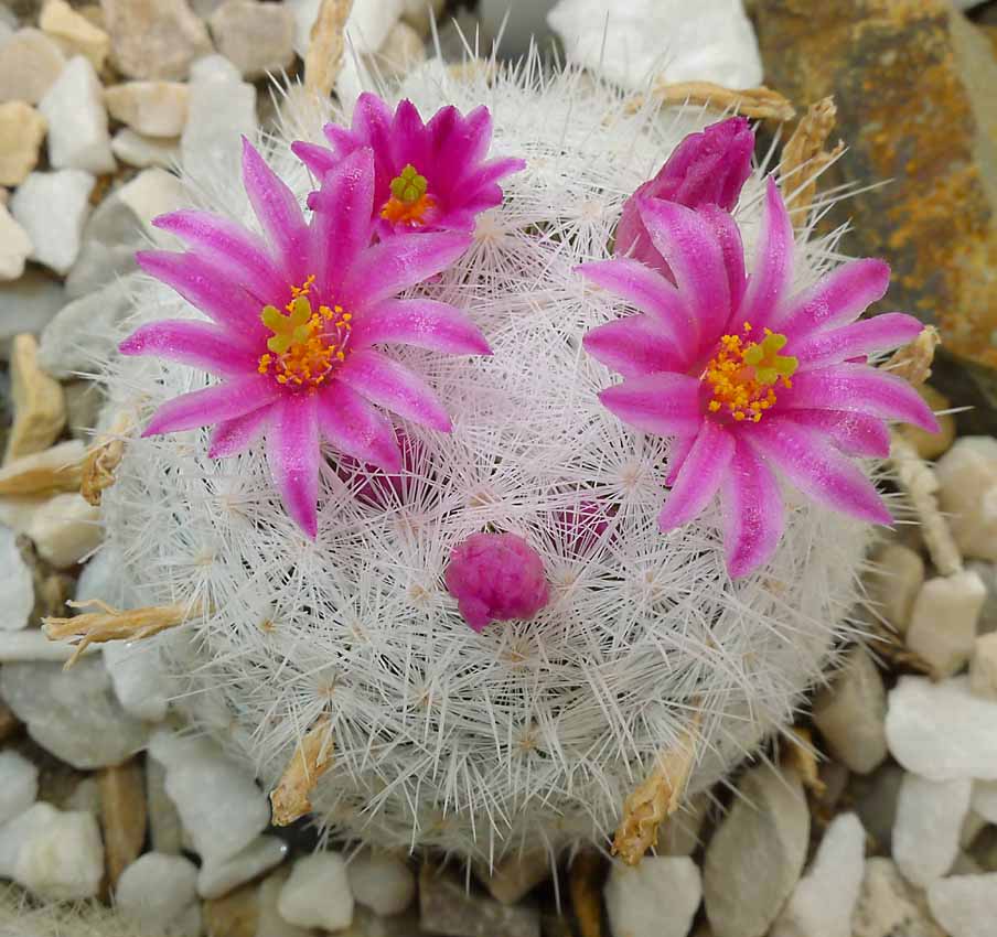 Všechny jsou nádherné,ale oranžový je teda pecka!Asi hloupý dotaz,ale zajímalo by mě, proč jsou vesměs kaktusy, růžově převládající barvy?