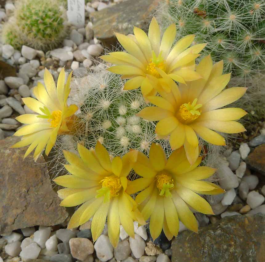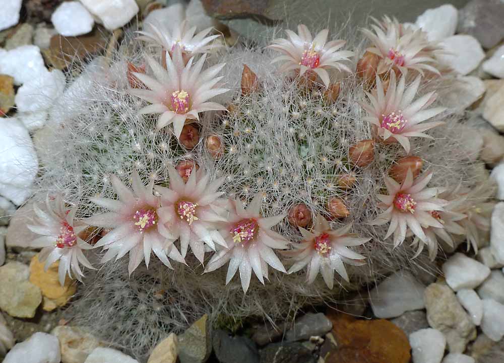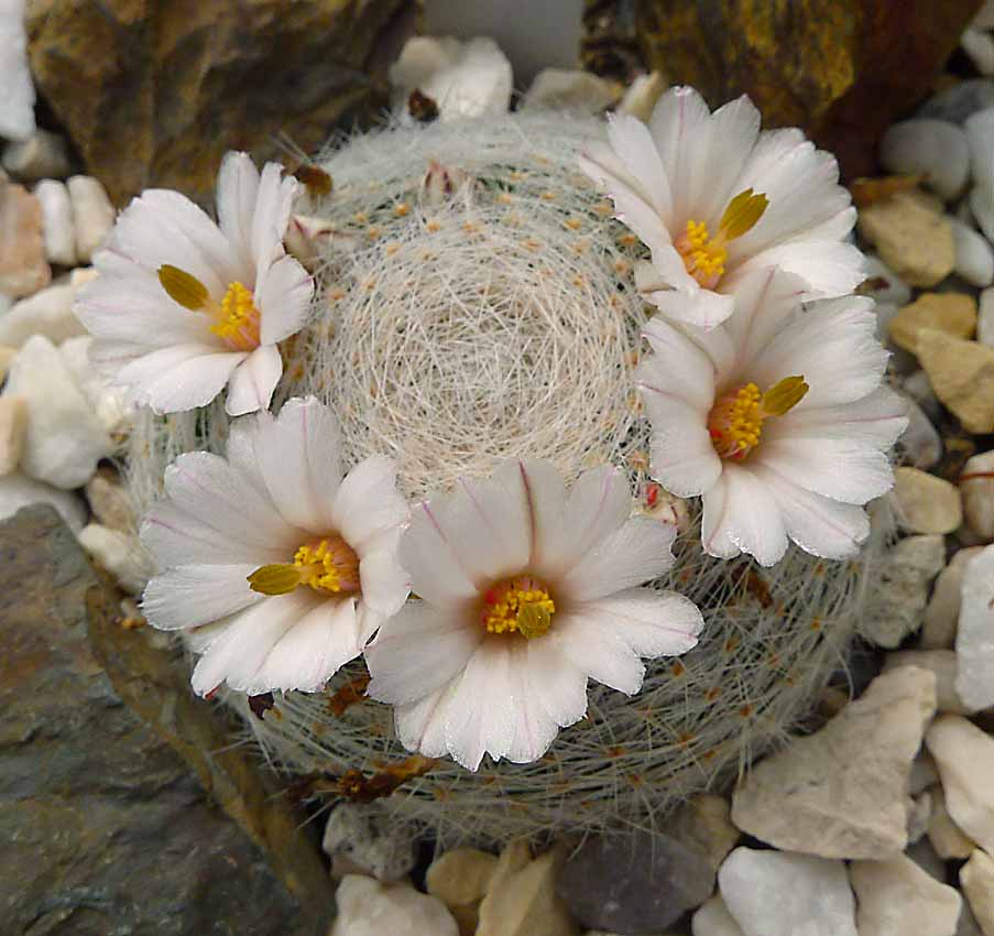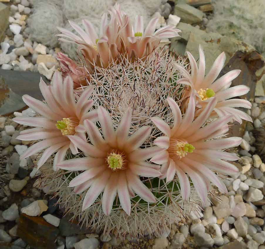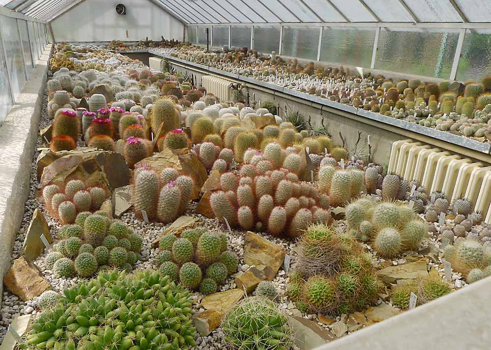 Několik kaktousků a pohled na mammillarie do skleníku