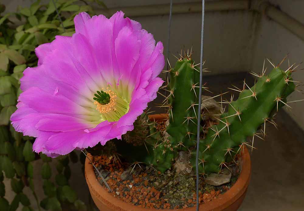 Ten velikonoční kaktus se také asi ukvete k smrti  Také mi rozkvetl Echinocereus penthalophus. V Mexiku masově kvetly když jsme tudy projížděli a tak jsem si vybral nejhezčeji kvetoucí trs a z něj si odřízl řízek. Rostlina je takové nezajímavé zelí, ale květ to vynahradí.