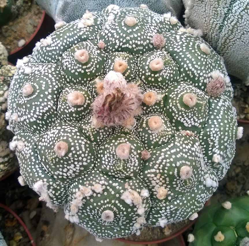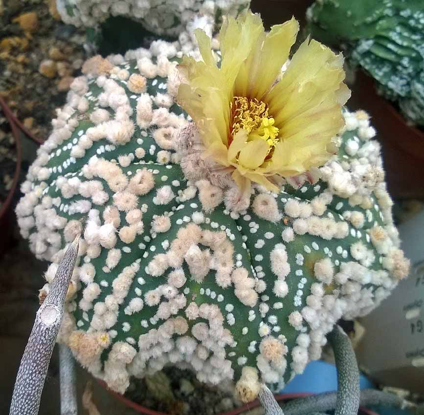 hanka2: Naštěstí se to často nepřesazuje  . O víkendu jsme měli kaktusářské setkání. Při cestě zpět jsme navštívili několik kamarádů. Že kříží Japonci Astrophyta a jsou tím posedlí jsem věděl. Že ale i u nás kamarád věnuje více jak 20m2 plochy křížencům Astrophyt jsem nevěděl. Všechno nádherné rostliny, které by možná i Japonci záviděli. Jen tak na rychlo jsem nacvakal mobilem něco okolo 20ti nejzajímavějších rostlin. Většinou kříženci Astrophatum asterias. Různá Kabuta a Superkabuta. Myslím, že jen tak pro pokochání stojí za shlédnutí.