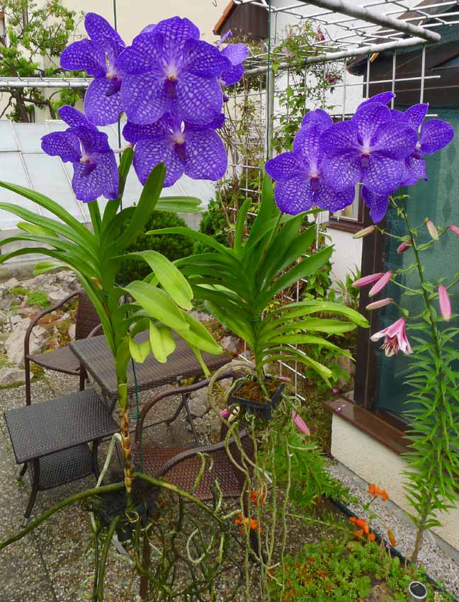 No stejně bych to viděl na zavěšení pod stromem. Zeď, i když na sever představuje spíše sušší podmínky. Leda by byla vlhká. Ty kytky na fotkách na zdi jsou docela seschlé. Já moc na letnění vand nevěřím. Každý rok je jiné počasí a letost je třeba i v Praze docela chladno. V. coerulea s tím asi nebude mít problém, ale kříženci se sanderianou nejspíš jo. Vandy jsou takové ty tuhé, silné orchideje, které svůj vzhled mění spíše pomalu. To může vyvolávat mylný dojem, že jsou odolné a bezproblémové. Na fotkách vidíme kytky narostlé většinou někde v pěstírně, ale kdo má vandu mnoho let a každoročně se těší z květů? Vás pane Záruba nepodezírám, ale vím jak snadno se z těchto kytek mohou stát mrzáci. To už sem ale nikdo nenapíše:-)