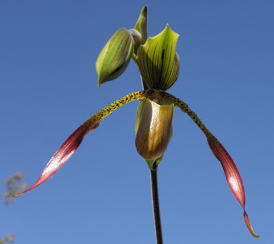 Mě kvete toto křížení : Paph. Julius (lowii x rothschildianum)