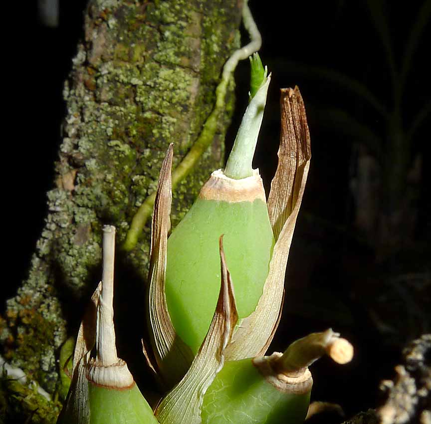 Tuto rostlinku mám stále radši. Letos jí upadl předčasně list ale jak to vypadá tak kvetení si ujít nenechá. Ani tempo růstu není nijak převratné. Tři asi dvoucentimetrové pahlízy za tři roky, to mne fakt baví