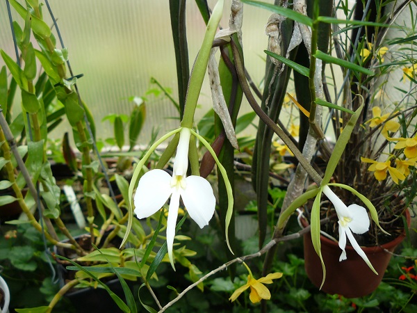 Coelogyne dayana kterou jsem loni dělil už zase bují. Udělala 13 nových pahlíz a 14 květních stvolů. Myslím že tak za dva roky budu porcovat znovu  . Tenhle klon je docela dosti kvetoucí. Musí ale dostat periodu sucha a chladu. V zimě ji dávám do kakt. skleníku kde je společně s Coelogyne cristatou na tři měsíce.