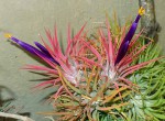 Právě rozkvetla Tillandsia tectorum. Za nejobtížněji udržitelný druh mezi stříbřitými Tillandsiemi považuji druh fuchsii. Ta mi vždy hynula na houbové choroby listů. Nyní tyto druhy nechávám v uličce kakt. skleníku od konce září do dubna zcela na sucho a jsou v pohodě. Skleník mám dosti suchý ale vůbec jim to nevadí.