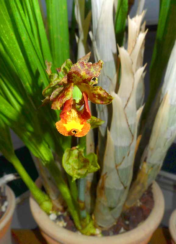 Na jaře mi nasadilo na květ Cyrtopodium z lokality od Tuly, Tamaulipas, Mex. Ještě nikdy nekvetlo a mělo jeden květní stvol. Než jsem si všiml tak ho dokázala zpustošit třásněnka západní. Květy postupně opadávaly i po postřiku a zůstal jeden a ještě k tomu mizerný. Nakonec ale dorostl tak, že se otevřel a díky tomu vidím, že je to také punctatum a květ je podobný tomu co mi kvetlo loni od pressa Zimapan, což je asi 300km vzdušnou čarou.