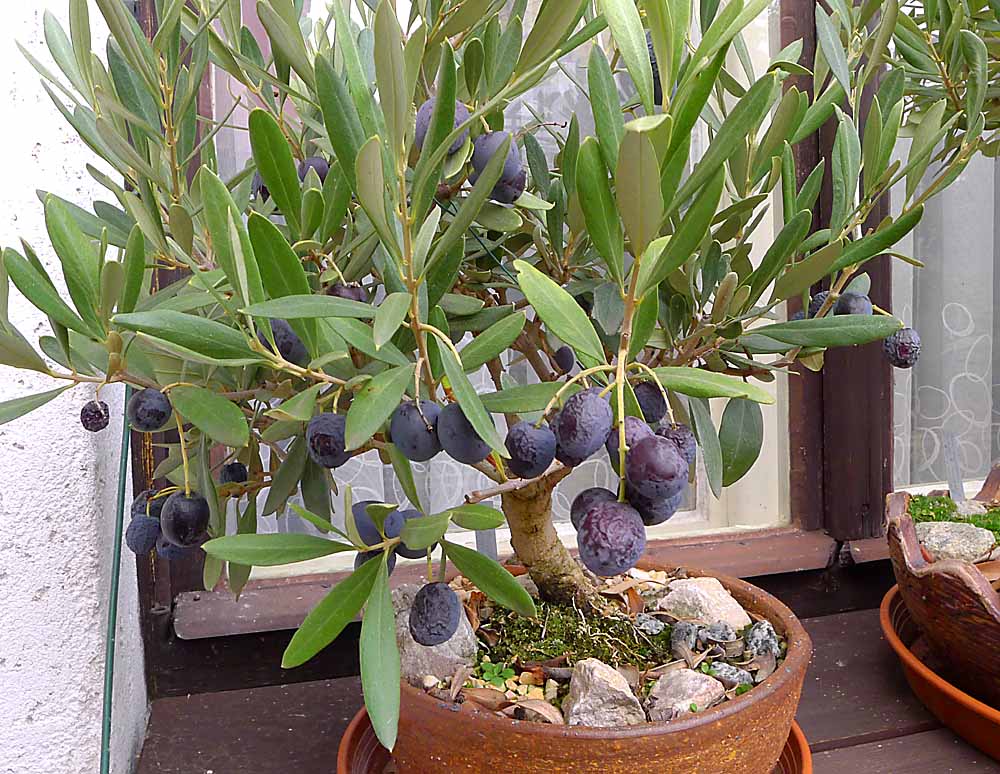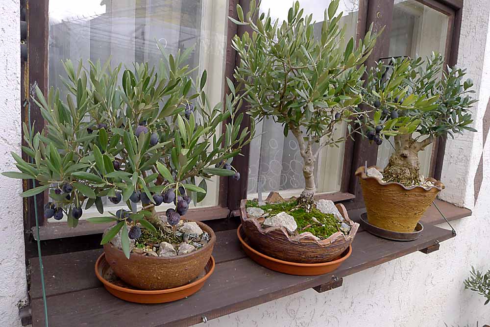 Tak olivovníky možná letos přečkají zimu úplně venku. Zatím nejnižší teplotu měly přes noc -6°C. Vypadají stále spokojeně a drží si i zralé olivy. Misky měly vícekráte promrzlé ale vždy se snažím aby zemina byla vlhká a nevyschla aby rostliny neuschly.