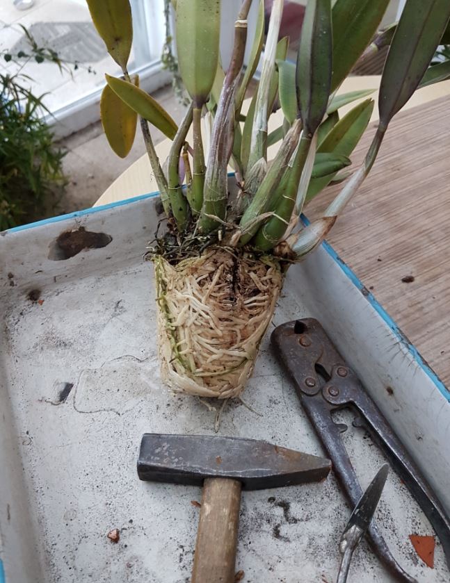 zaruba píše: Zubatý nůž na chleba se mi osvědčil pokud v tom není keramzit. Jinak motorová pila  Já to dělám zahradnickými nůžkami. U některých velkých Cymbidií došlo i na sekeru obzvláště u těch, kde byly pahlízy hodně nahloučeny.