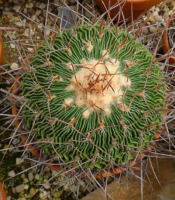 Další dva zajímavé kaktusy. Astrophytum myriostigma nazývaná dříve též Biskupská čepička a Echinofossulocactus multicostatus La Muralla - asi import. Původnímu majiteli rostlina nikdy nekvetla protože zimoval ve sklepě ve tmě. Echinofos. zimované ve tmě většinou nekvetou. Já mám vytápěný skleník, tak snad se příští rok dočkám. Květy má karmínové. Rostlina má 120 žeber. Rekord je cca 160!