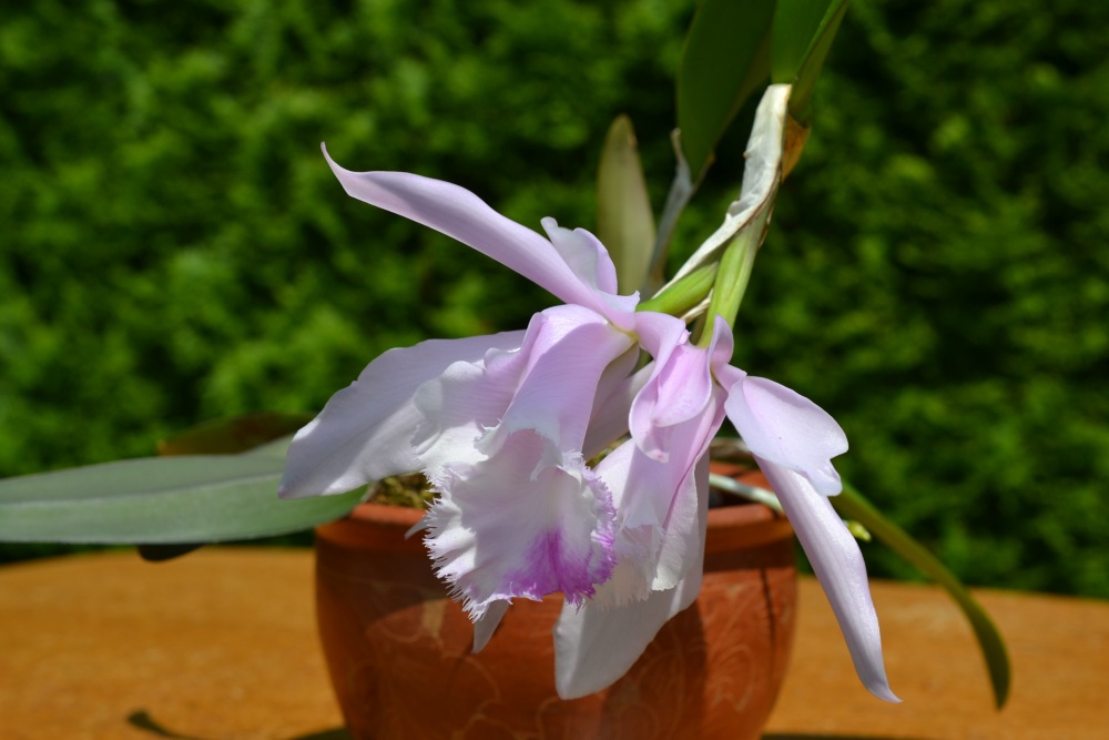 Začíná kvést D.Marie Noel C.dayanu budu muset už řezat. Utíká z misky, kvete už stále míň. Venku nahoře se jí ale líbí.
