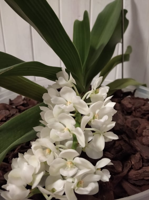 Ano je. Nic nezastříhávám. Na jaře jej pověsím do keře šeříku a to na plné slunce a každý večer to přelíznu hadicí. Jednou za 14 dní to celé namočím do kbelíku s hnojivem cca na 10-15 minut. V zimě zalévám jednou za 14 dní nebo porosím 1x týdně ale nehnojím až do února. V zimě je v teplotách v noci 12-13°C a přes den pokud nesvítí slunce tak okolo 19°C. Při slunci je ve skleníku i 23°C. Získal jsem menší oddělek cca před 5ti lety. Bohužel nejde nafotit úplně celý rozkvetlý, protože je na půlkulaté korkové kůře, takže je vždy vidět jen část.