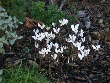 . K pěstování venku: řekl bych, že C. purpurascens je bez debaty, C. coum taky pokvete, C. hederifolium při souběhu okolností pravděpodobně občas něco udělá, pokud se mu pomůže dobrým stanovištěm (pata jižní zdi nebo něco takového). Klíč je tady: