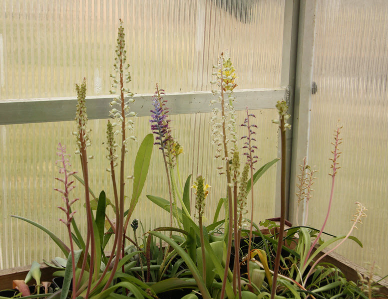 Evo, co jsem tak stačil vypozorovat, většina lachenálií mi kvete až s koncem sezóny. Jen málo jich kvete uprostřed zimy - nejranější bývají L. reflexa a L. pusilla.