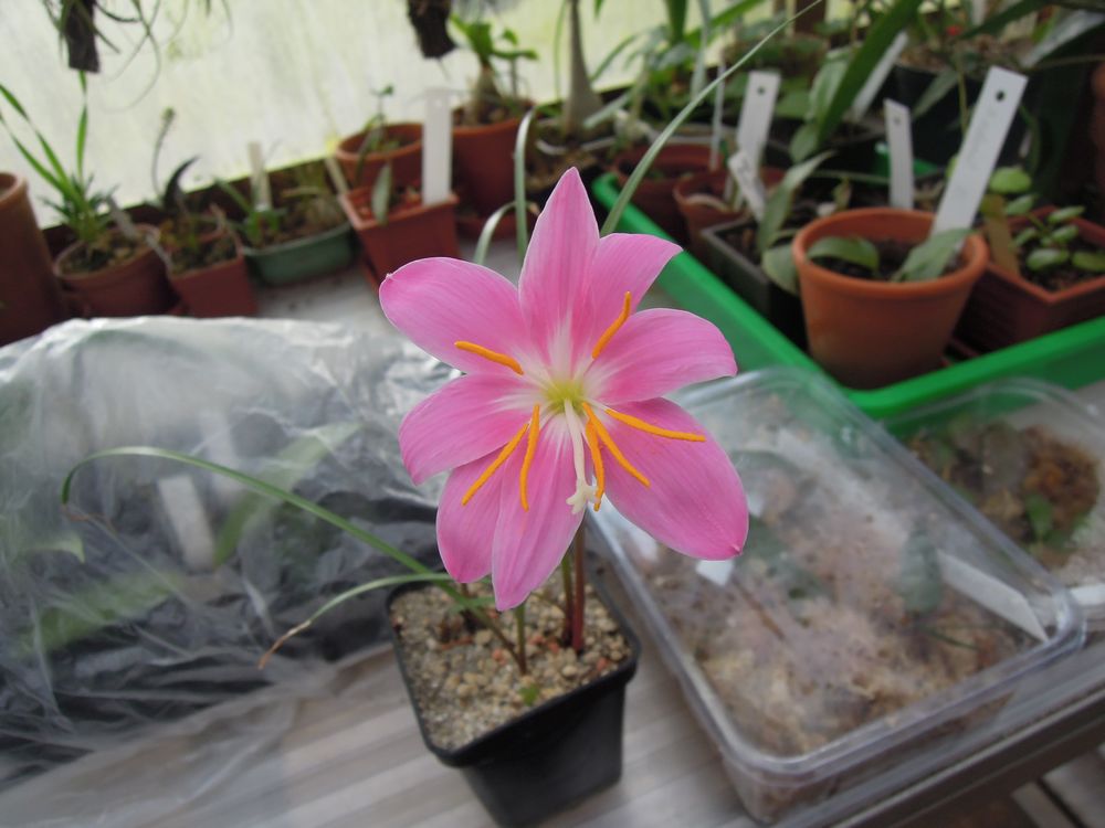 Evo, jestli mohu napsat svůj názor, tak to habrantus nebude... Je to spíš zefyrantes, aspoň z té fotky to na mě dělá ten dojem. Habrantus má tzv. trojbratré tyčinky, tedy tři dvojice tyčinek s různě dlouhými nitkami - na některých fotkách na netu je to dobře vidět. Zefyrantes má všech šest nitek stejně dlouhých, což myslím má i vyfocený květ. Speciálně H. robustus je často zaměňován se zefyranty. Jo a mimochodem - hezká odchylka - čtyřčetný květ