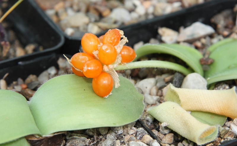 Sezóna jihoafrických pomalu končí. Na první fotce plodenství Haemanthus sp. Ratelkloof - obrázek květů je někde vepředu. Pak následují dvě lachenálie z čeledi hyacintovitých, obě jsou tříleté semenáče, takže u nich není nutné čekat na květy dlouho - šikovnějším než jsem já kvetou už po dvou letech od výsevu