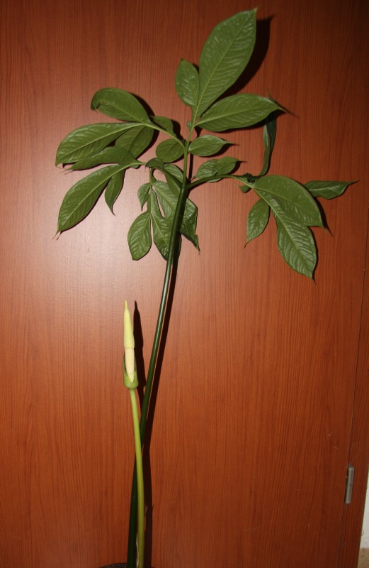 Tak já bych zase chvilku prudil se svými cibulemi, hlízami a oddenky. Nejdřív jihovýchodní Asie: roste tam zmijovec Amorphophallus coaetanus, na rozdíl od většiny příslušníků druhu prakticky nezatahující. Na jaře kvetl, vyfotil jsem, ale ke zpracování fotek jsem se dostal později. Pokud tu už byl, tak se omlouvám.