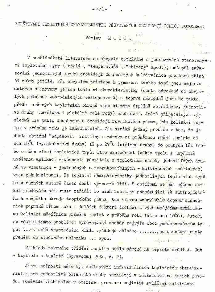 Článek má trochu tajemný název – Zjišťování teplotních charakteristik pěstovaných orchidejí pomocí nomogramu, autor Václav Mužík. Po přečtení článku jsem byla naprosto nadšená, je to přesně ta pomůcka, po které mnozí z nás prahnou – jednoduché zjištění teplotních potřeb pěstovaných orchidejí. Po několika dnech jsem začala přemýšlet, jak využít „nomogramu“ v programu Excel, aby se po zadání základních údajů, teploty a pásma doplňovaly samy. Tabulku kromě mě vyzkoušel Radek a také Kyra.