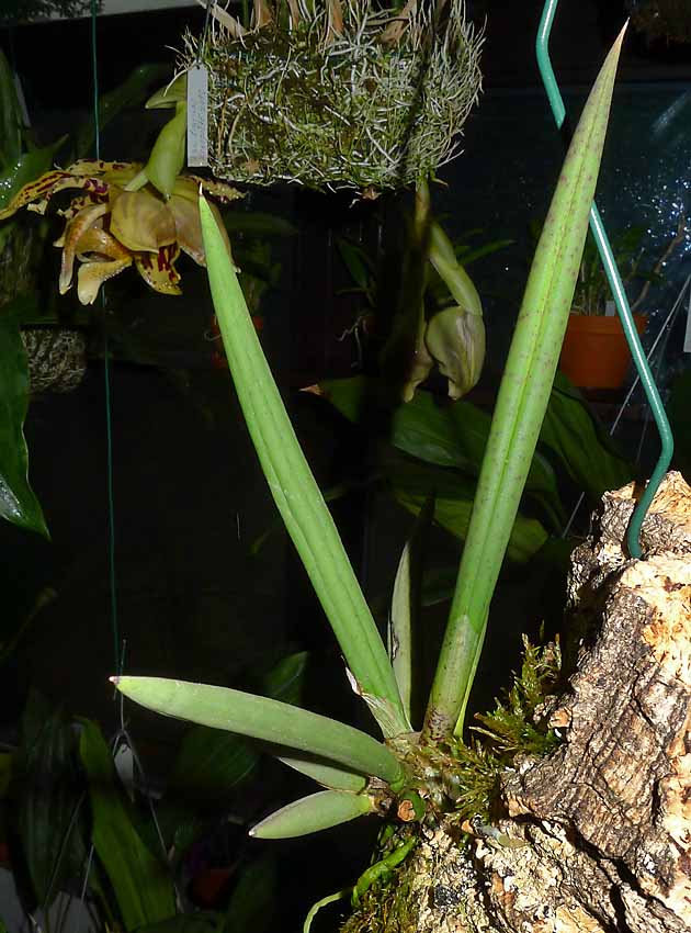 Myslel jsem, že když kytka nemá kořeny tak list i pahlíza v následujícím roce jsou menší než v roce předešlém- než kytka prokoření. Na tomto Oncidiu ale je list již větší než byl loňský. Navíc dorostlá je pouze horní třetina listu, zbytek stále roste. Je to ona úžasná forma O. cebolleta ke které jsem se shodou náhod dopátral přes p. Kláta a z které mám velikou radost.