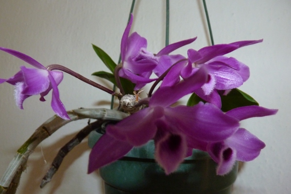 Pěstuji jej v létě venku, v zimě ve skleníku , teplota v zimě 12-14 st. V létě přihnojuji jen občas, zálivka 1x týdně. Rostliny prolívám nenamáčím. V zimě minimální zálivka dle pořeby spíše sušeji. U dendrobií spíš suším než zalívám kvůli kvetení...