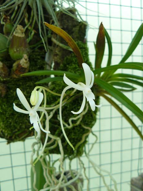 Každé léto kvete tahle drobější vandovitá rostlinka s nenápadnými, ale v noci krásně vonícími květy. Pochází z Koreje a Japonska, kde bývala posvátnou květinou samurajů. Roste na přistíněných místech, ale v období klidu je vystavena po opadu hostitelských stromů dosti silnému oslunění. V kultuře vyžaduje chladnější pěstováním v zimě s maximem světla. Přes léto ji mám umístěnou venku chráněnou před přímým slunkem. Při dostatečné vlhkosti jí narůstají dlouhé vzdušné kořeny.