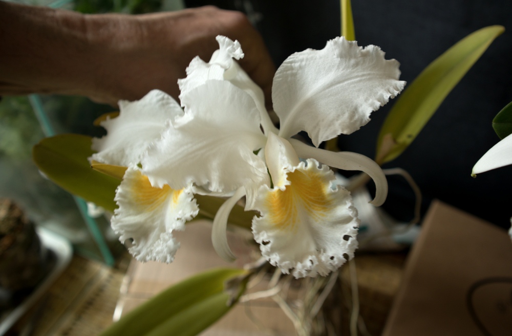 C violacea v. alba dnes u Paphia a přijel i ženich ,došlo k opylení s C. mossiae v. wageneri .