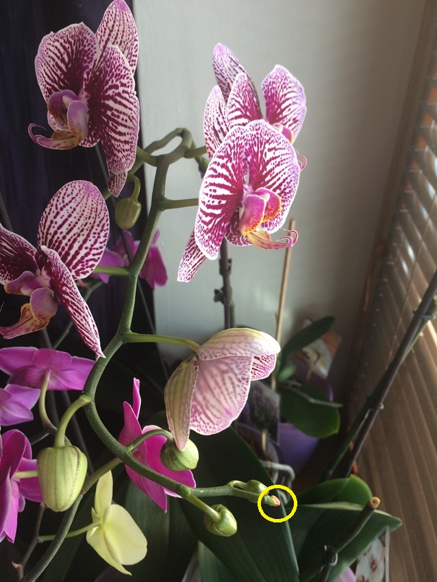 Jen odbočím, že když si koupím nějaké Phalaenopsis, které zrovna kvetou, odpadávání koncových poupat (většinou 1-3) je většinou normální a jsem s tím smířen, neboť to je určitě způsobeno změnou prostředí, šokem z převozu během dopravců a poté ze samotného obchodu, takže rostlina raději ty malinká poupata o rozměrech hrášku vždy shodí, což je samozřejmé.