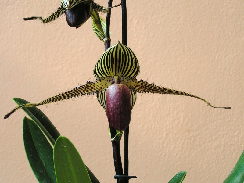 Tento překrásný šlechtic, původem z hadcových svahů Mount Kinabalu (Borneo) je ve volné přírodě extrémě vzácný (pokud tam vůbec ještě roste). Stále celkem vzácný je i ve sbírkách, protože dorůstá do květuschopné velikosti až po mnoha letech. Ceny prodávaných dospělých rostlin se tak (přes všechen pokrok v kulturách in vitro) stále často pohybují za hranicí 100Euro. U levnějších rostlin se zase často po rozkvětu ukáže, že se jedná o hybrid (trpká osobní zkušenost). Přesto jsem šel opět do rizika a koupil neoznačenou rostlinu se třemi poupaty za 30 Euro. Prodejce (pan Handelbauer) se na výstavě ve Vídni dušoval, že jde o pravé rothschildianum a jako důkaz ukázal na kvetoucí rostlinu ve svojí expozici. Výsledek posuďte sami.
