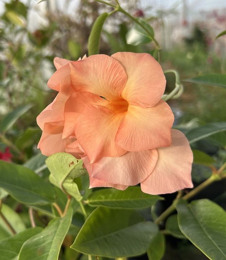 Žlutá mandevila zatím drží, tak snad se do jara nic nezvrtne a už se mi ji konečně podaří přezimovat. Nechal jsem ji v teplém skleníku u zmijovců, sem tam vystrčí i květ... Ale je to magnet na vlnatku, musím ji pořád hlídat. To samé také v teple umístěná Mandevilla 'Alice du Pont', stařičký hybrid, dost odlišný od zbylých: za prvé obrovské květy, určitě dvakrát větší než u zde prodávaných červených, bílých a různě žíhaných dipladenií, za druhé taktéž obrovské, žebrované listy. Tu jsem ale v létě vyfotit zapomněl a momentálně nekvete, tak snad zase v létě