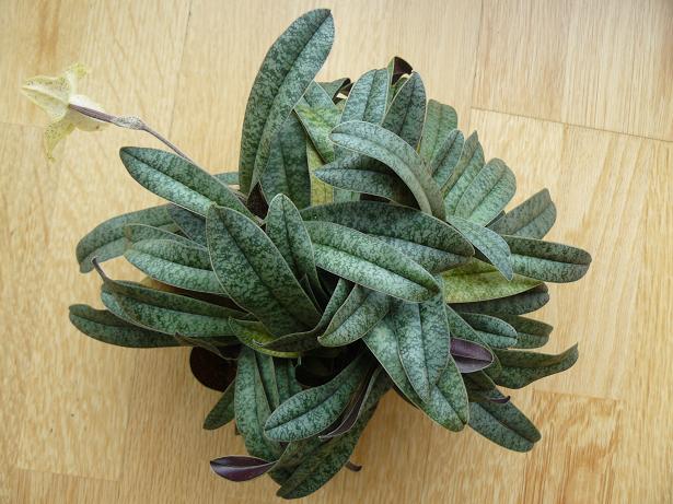 Tak jsem musel po deseti letech nerušeného pěstování přesadit do většího květináče Paph. concolor a on se mi "odměnil" jedním kvítkem, přestože je to má největší rostlina. Asi se mu tenhle zásah do jeho klidného života moc nelíbil. Rostlina pochází z Vietnamu a je dost podobná typům China concolorů. Než jsem ho stačil vyfotit, tak mi téměř zvadlo