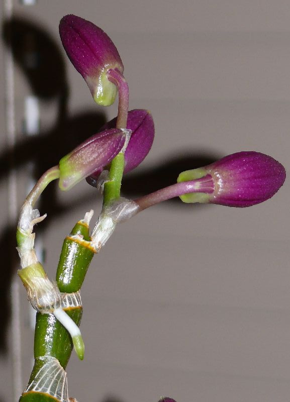 Bílé dendro na stejném místě nahodilo květy ihned, ani nestačilo sesychat. No a růžové jsem dala chladit později, nemělo dozrálé pahlízy, a to čeká na stejném okně přes měsíc bez vody a nedělá nic, ani nesesychá.
