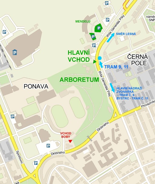 Kdo se chystá na výstavu orchidejí autem může použít velká parkoviště u budovy třída Generála Píky 5. a 7.(dříve Spořitelní akademie) zhruba 200m od hlavního vstupu do Arboreta obě budovy včetně parkoviště patří univerzitě.