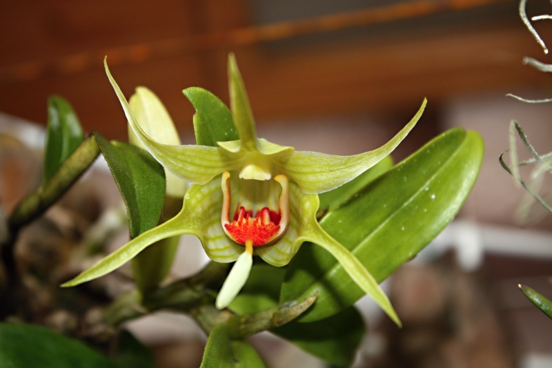 Taky se musím pochlubit. Před třemi roky jsem si přivezl z výstavy v Drážďanech asi 5cm semenáček Dendrobium tobaense. Dnes má 4 pahlízy, ta poslední narostlá, má 15cm a na jejím konci poprvé vykvetla. Květ je asi 6cm velký.
