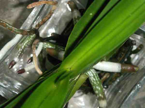 Miro, koukám na ty Vandy, úžasný. Ten skleněnej obal je plný kořenů? Vidím to dobře? Mám Vandu, jen je nějak chudinka. Musela jsem ostříhat kořeny, protože jsem jí je zničila nejspíš silnějším roztokem hypermanganu (zdálo se mi, že chytly nějakou plísňovou chorobu. Teď už rostou nový (posílám obrázek) a tlačej se na stěny v té kulaté váze. Vadí to? Nezloměj se? Dala jsem ji do hranatý, je v ní víc místa. Nemám ji nechat v tom těsnějším prostředí? Ď, Ň.