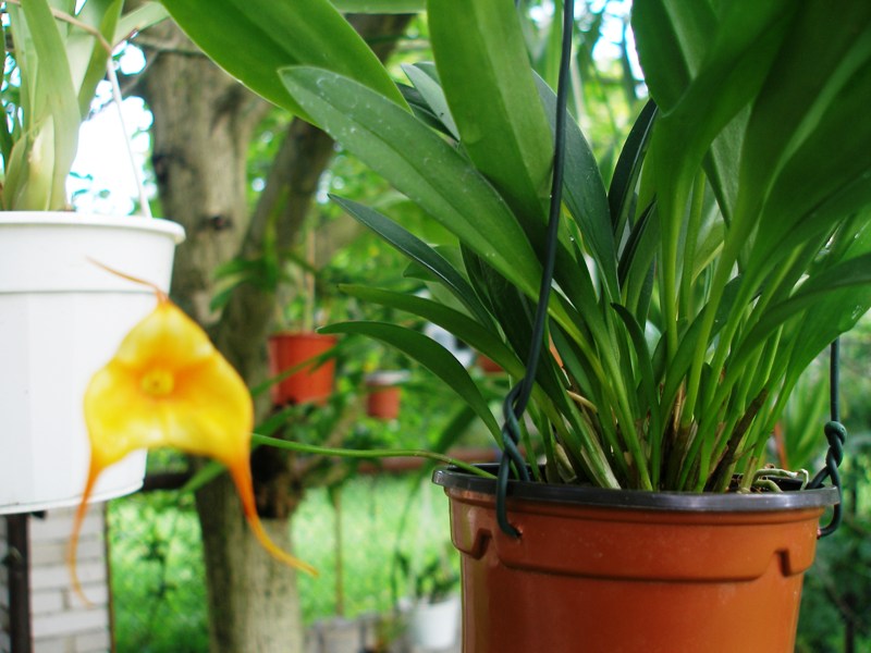Zavěšovat takto Masdevalky je dost odvaha. Všede jsou sice jiné podmínky, ale kolem zavěšené rostliny je suššeji, jak když je dole. Já jsem pro Masdevalky nenašel nikde stanoviště na letnění. I ta má nejvlhčejší místa, na zemi jim nestačila.