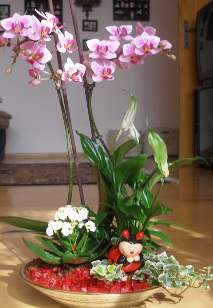 Kdysi jsem v práci dostala takto sesazenou skleněnou mísu bez odtoku. Vypadala moc pěkně, ale během asi 3 měsíců vypadala přímo hrozně. Rostliny jsem rozsadila do samostatných květníků. Phala z toho měla šok, že okamžitě vyhnala keiky :roll: