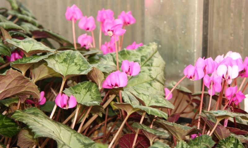 Po delší době je zase něco nového, co jsem sem ještě nedával. Nejdřív bramboříky: systematika druhu Cyclamen coum je podle mne poněkud zmatená (pokud bych si nebral servítky, řekl bych, že je dokonce chaotická :mrgreen: ); není mi moc jasné, čím se od sebe liší jednotlivé poddruhy. Rozdílů moc nevidím a jen z piety nechávám u kytek jmenovky, se kterými jsem je získal. Rozdíly v barvě květu nejsou úplně dobrým rozlišovacím znakem, pokud vysejete semena z kontrolovaného samosprášení jedné rostliny, semenáče vytvoří pestrou paletu různých barevných typů, ve které se dají najít "typičtí" zástupci jednotlivých poddruhů pěkně vedle sebe. Možná je to způsobeno tím, že u nás je to za ty generace pěstování všechno pokřížené a ze semen z přírody by vyrostly jasně odlišné kytky - nevím. Takže čtyři obrázky jednotlivých "poddruhů" plus jeden celkový na bohatě kvetoucí velkou kytku.