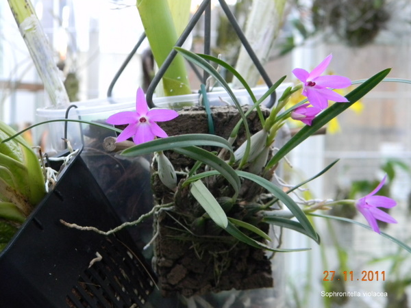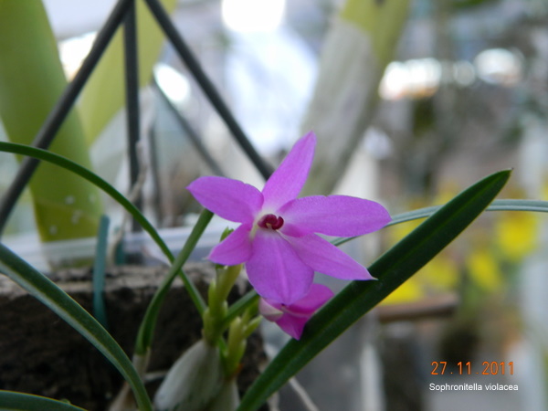 přidávám Sophronitellu violaceu, velmi pěknou malou orchidku. Barva odpovídá skutečnosti na fotce, kde je detail květu. Tahle barva mi moc fotit nejde, vždycky to vypadá jinak, než ve skutečnosti.. ;) ale kytička je to nádherná.