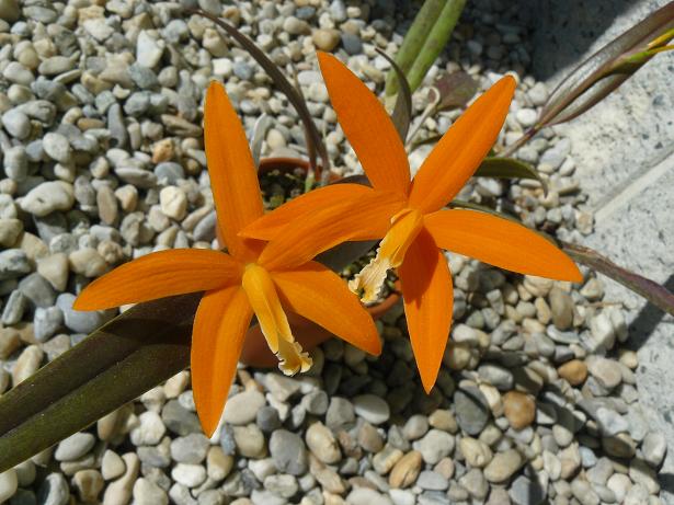 Tak rozkvetla letošní první rupikola - Laelia harpophylla. Patří k monzunovým lélijím, které nejsou ve svých nárocích tak extrémní jako prérijní rupikoly z vyšších poloh. Pochází stejně jako všechny tyhle rostliny z Braziliie, kde roste v přímořských oblastech až do výšky 900 metrů.