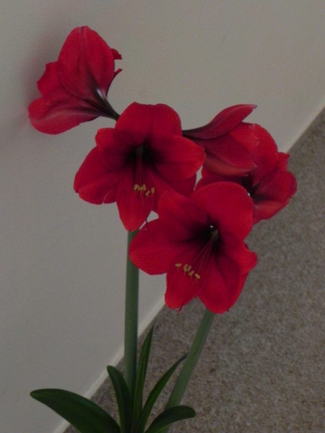 Tak se musím pochlubit - Hvězdník, mám ho tři roky, první rok jsem koupila cibuli a vykvetl 4 květy, vloni nic a tak jsem ho přes léto trápila bez zálivky venku a letos hned 5 květů chudák.