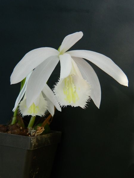 Lubos - pěkné kytky. Obě dvě velmi dobře rostou a určitě bych je doporučil všem, kdo chtějí s pleionkami začít. Co se týče Z.W., existuje několik velmi zajímavých a žádaných klonů od čistě bílé do purpurové. Letos jsem vylahvil vlastní remake tohoto křížení s bílou P. formosana. Slibuji si od toho, že dostanu nějaký Z.W. čistě žlutý, což by při vitalitě tohoto kultivaru mohla být snadná žlutě kvetoucí pleionka.