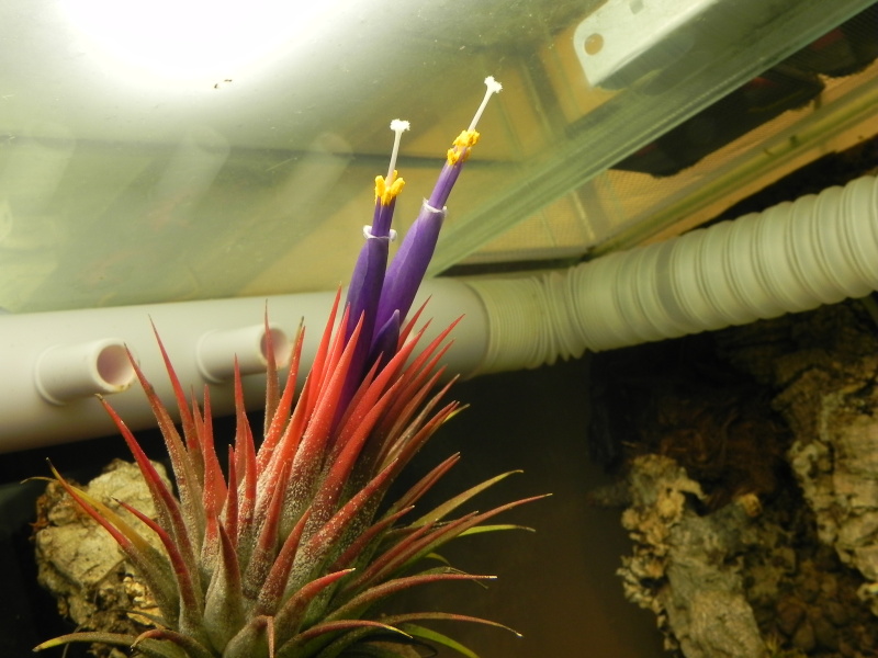 Mám ji ve vitríně, odvětrávání si myslím, že mám velmi slušné a přímo na T. ionatu jde přímo vzduch z větráků, mám tam těch Tilandsíí více, butzii, caput- medusae,usnoides a dokonce i 3x tectorum, ale to mám přímo pod větráky a ještě odvětrávací síťkou, navíc tak, aby na ně nestříkala voda ,na opačné straně od páry a pod světly ,takže s nejvyšší teplotou. Kupodivu všechny přirůstají i s kořínky, ale kvete jen ta jedna.