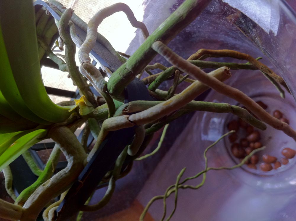 Pokud jde o vázy, nemám k nim důvěru. Vandy se pěstují komerčně v košících a do váz je nacpou akorát obchodníci, co na nich chtěj vydělat. Zavěšení je možné, protože vandy nejsou tak vlhkomilné jako phalaenopsisy, ale je třeba často sprchovat, v létě třeba i denně...a kdo si to může dovolit? Z praktického důvodu lze doporučit květináč s hodně hrubým substrátem, borka plus cca 30% polystyrenu a část křenů klidně nechat růst ven do prostoru.