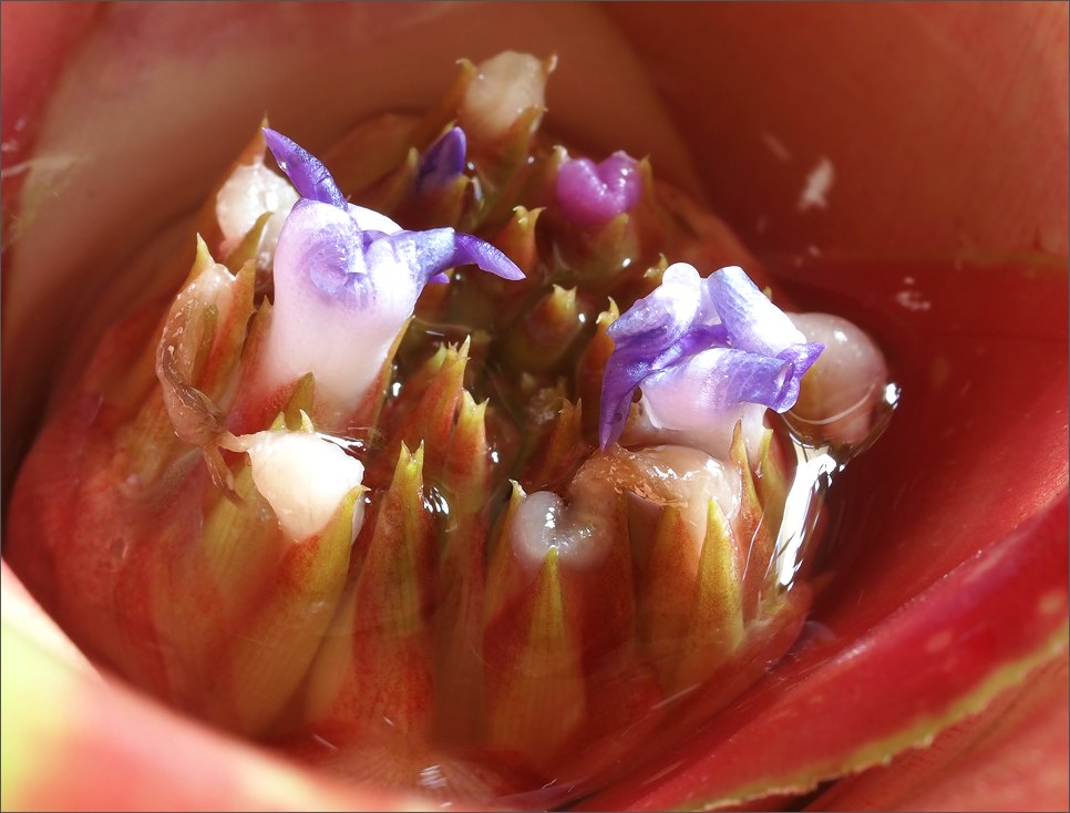 Mezitím se květ téhle bromélie začal postupně otevírat...