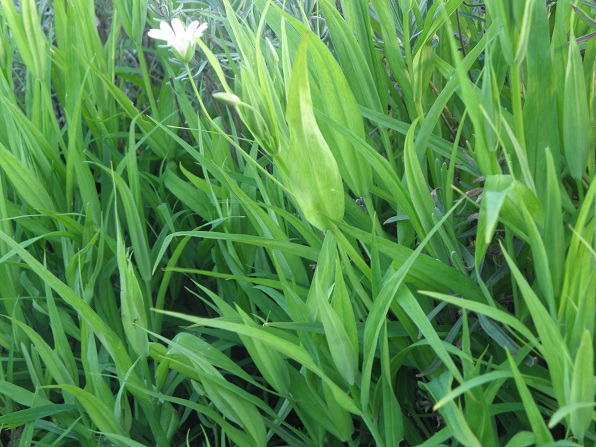 To bude ptačinec velkokvětý, Stellaria holostea (čeleď hvozdíkovité).