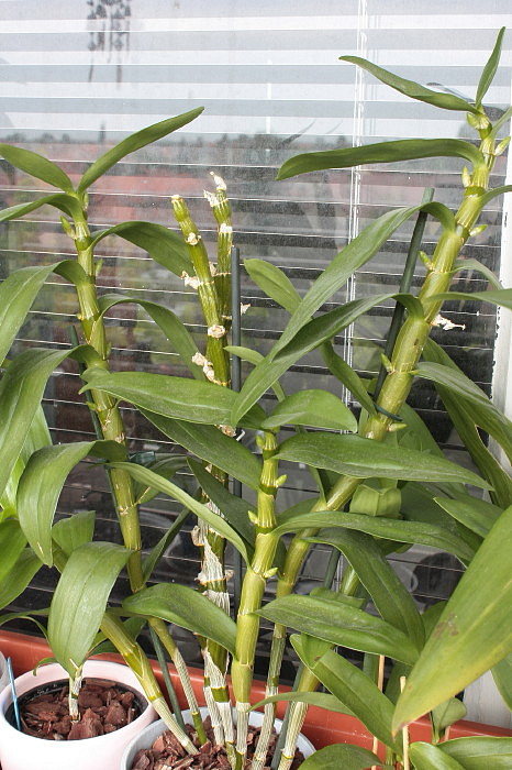 Vonku som ho mala aj ja. Cele leto az do jesene, kedy teploty klesali k 10stupnom. Potom cez zimu malo 9-12 a vela svetla. POlievala som 1x za 3 tyzdne. Potom som prestala polievat uplne na 2 mesiace. Pahluzy sa scvrkli a zacala rasit nova pahluza. Ziadne kvetne puciky. Mnohym takto pestovane nobilka kvitli. Na druhej strane som na roznych strankach videla fotky rozkvitnutych nobiliek, ktore ludia pestuju spolu s phalacmi a kvitnu im. Takze plan na tento rok - letnit az do aleluje, zimovat v miernych teplotach (17 stupnov), polievat pravidelne, ale aby stihlo preschnut a vela svetla. Ak odmietne kvitnut, tak poleti.