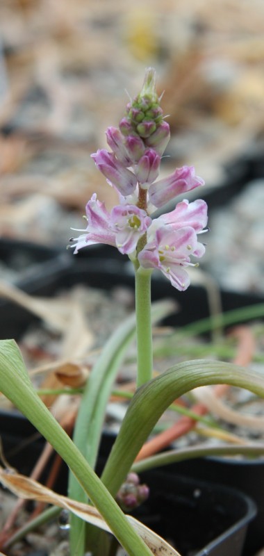Sezóna jihoafrických pomalu končí. Na první fotce plodenství Haemanthus sp. Ratelkloof - obrázek květů je někde vepředu. Pak následují dvě lachenálie z čeledi hyacintovitých, obě jsou tříleté semenáče, takže u nich není nutné čekat na květy dlouho - šikovnějším než jsem já kvetou už po dvou letech od výsevu