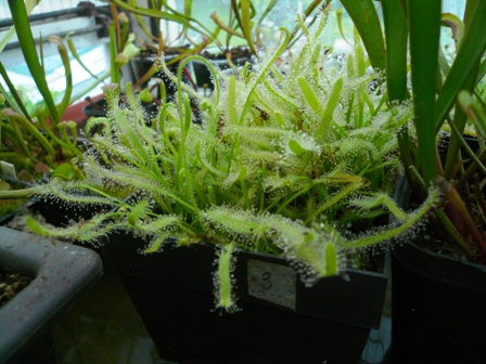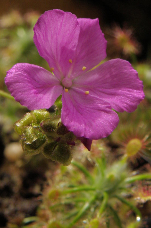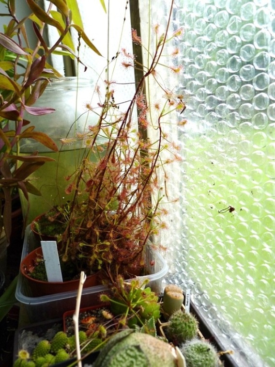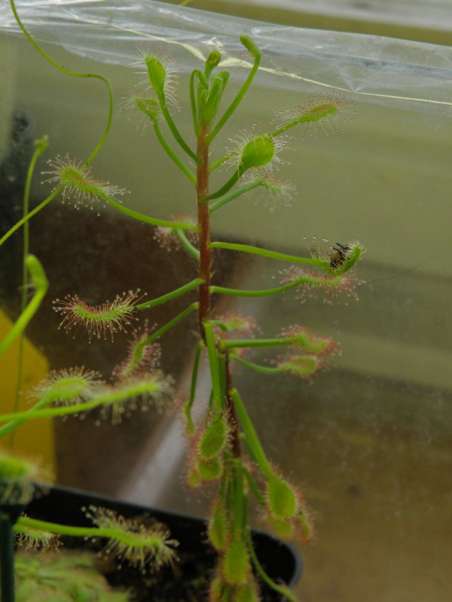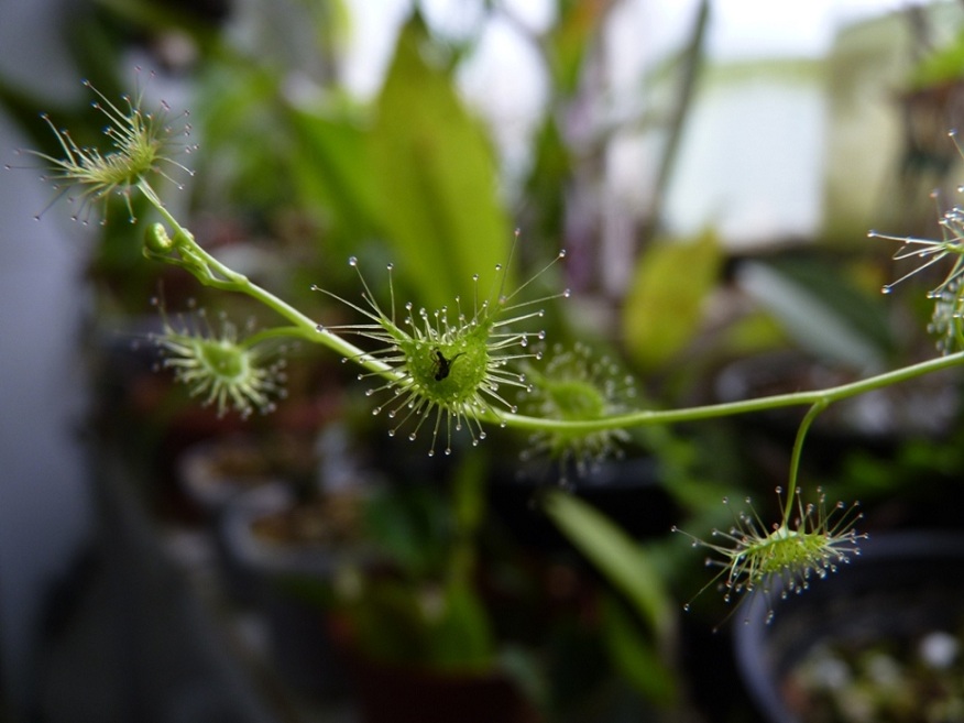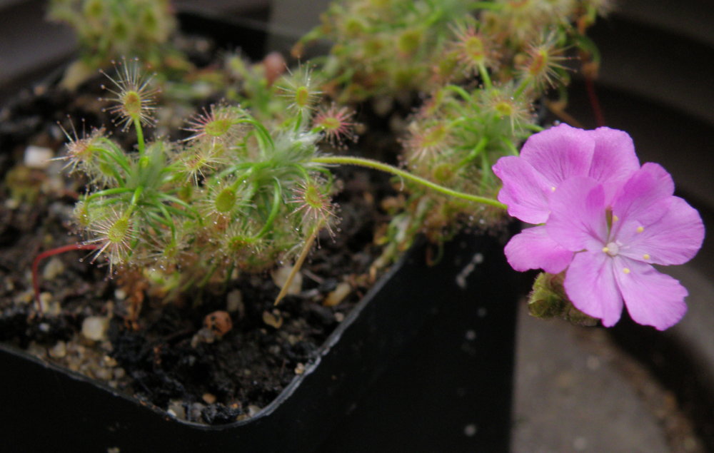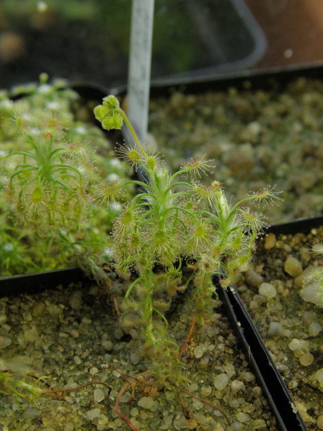 Na tuto rosnatku jsem obzvlášť zvědavej. Roste dobře, jen druh nevím, protože to je taky černý pasažér. Je to hlíznatá australská rosnatka, snad Drosera peltata, protože patří mezi ty běžnější. Je naprosto fotogenická.