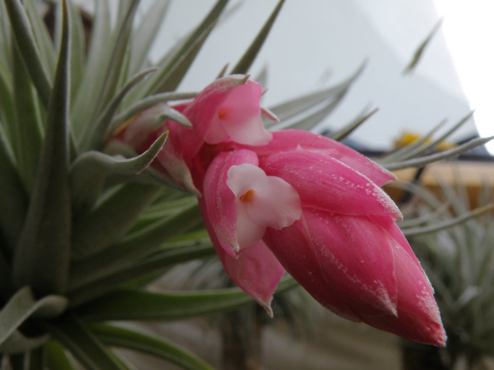 Již nějaký den se mohu těšit této kráse .... Tillandsia meridionalis (pozn. - někteří autoři tento druh neuznávají, a tvrdí že jde o synonymum s T.ixioides, či T.recurvifolia ....což trochu nechápu protože ixioideska kvete krásně žlutými kališními kvítky na rozdíl od čistě sněhobílých u meridionalisky, recurvifolia nevím jak kvete - nevlastním ji).