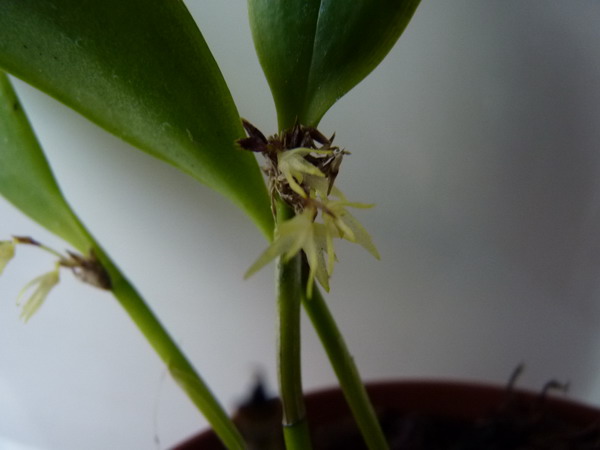 Věro, kdyby jsi se mrkla ke mně, tak zjistíš, že je to Pleurothallis obovata. Je to opravdu prcek. Přičichni, krásně voní. Květ je opraavdu nezajímavý, ale ta vůně je zatím nejlepší, jakou jsem u orchidejí cítil. Vždycky to ve mně evokuje chuť se zakousnout.